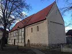 Zweiteilige Kirche mit älterem romanischem Chor und angebautem Kirchenschiff aus Fachwerk aus dem 17. Jahrhundert. Für die Glocken wurde mit dem Fachwerkanbau ein separater Glockenschauer südöstlich der Kirche am Dorfanger errichtet.
