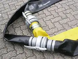Eine Sonderform von Schlauchkupplungen stellen die im Brandschutz verwendeten Kupplungen für wasserführende Armaturen im Bereich Wasserentnahme und Wasserfortleitung dar. So wird heute europaweit hauptsächlich die als Bajonettverschluss ausgeführte und nach dem Erfinder benannte Storz-Kupplung verwendet.[2]