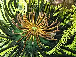Mit ihren Fangarmen ernähren die Haarsterne sich als Filtrierer, wobei sie Detritus, sowie pflanzliches und tierisches Plankton aus dem vorbeiströmenden Meerwasser filtern.[1]