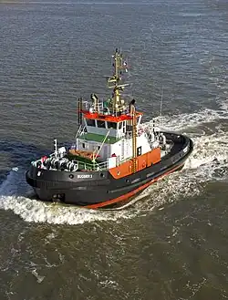- „Rotor“-Schlepper: Drei Antriebsanlagen, zwei unter dem Vorschiff, eine weitere im Heck. Der Schlepper kann auf der Stelle drehen. Die Bezeichnung „Rotortug“ ist ein geschützter Name des niederländischen Unternehmens KST.[1]