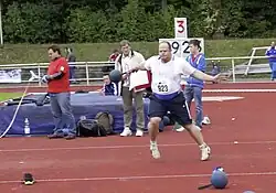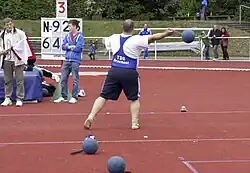 Schleuderballweitwurf, Schleuderballwerfen genannt, ist eine Ballsportart, die zu den leichtathletischen Disziplinen gehört und im Einzel durchgeführt wird. Der Schleuderball hat eine am Ball befestigte Schlaufe (Handgriff). Mittels Drehung wird er beschleunigt und auf Weite geschleudert. Der Weltrekord liegt bei 86,92 m (Alwin Wagner, 21. August 1982, Werfertag in Lohfelden).[1][2][3]