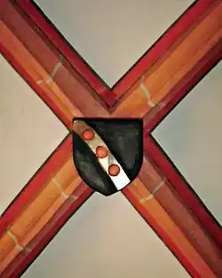 In Schwarz, ein schräger, silberner Balken, belegt mit drei roten Kugeln. Helmzier: ein schwarzer Turnierhut mit silbernem Stulp, darin stecken zwei goldene Steinbockhörner; Helmdecke schwarz-silbern.[9][10]