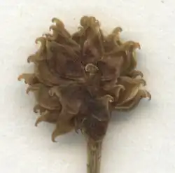 Die etwa 1,5 mm langen Fruchtschnäbel sind bei jungen Nüsschen stark eingerollt (Unterschied zu Ranunculus polyanthemoides und Ranunculus polyanthemos) und in reifem Zustand stark gebogen. Sie sind etwa 1/4 bis 1/2 so lang wie das restliche Nüsschen.