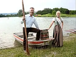 - ↑ Das erste Fass kommt mit dem Ruderboot über den Schlosssee. In: Schwäbische Zeitung. Abgerufen am 30. Juli 2010.