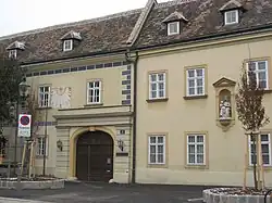 Das ursprünglich aus der Renaissance stammende Gebäude wurde im Laufe der Zeit durch Um- und Neubauten mehrfach verändert. Der Kern stammt aus der Zeit um 1700 und besteht aus einer zweigeschoßigen Anlage, die ursprünglich vierflügelig angelegt war und heute durch einen vorgezogenen Osttrakt gekennzeichnet ist. Die Fassade zum Khleslplatz ist einfach und besitzt ein breites korbbogenförmiges Tor mit Rustikarahmung und Steingewände. Daneben befindet sich nach Westen zur Oswaldgasse zu ein im 19. Jahrhundert neu errichteter Trakt, der von einer Nischenfigur der hl. Anna mit dem Marienkind aus der Mitte des Jahrhunderts geziert wird. Zur Hofseite liegt ein ehemals offener kreuzgratgewölbter Arkadengang.