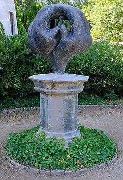 Neben den bildhauerischen Werken des 19. Jahrhunderts ist im Schlossbereich auch eine Plastik der Modernen Kunst vertreten. Unterhalb der Porzellanterrasse stellte die Verwaltung der Staatlichen Schlösser und Gärten Potsdam-Sanssouci 1987 ein Exemplar der Bronzeplastik Vogelbaum auf. Das Werk wurde von dem DDR-Bildhauer Theo Balden geschaffen. Die Platzierung moderner Kunst in den Schlossparks war sowohl in Potsdam und West-Berlin in der Zeit zwischen dem Zweiten Weltkrieg und den 1980er Jahren keine Seltenheit. Der Vogelbaum erinnert an ein früheres Kunstwerk an gleichem Standort, das in den Kriegswirren verloren ging.[190] Es ersetzte eine neogotische Vogelvoliere.[191]