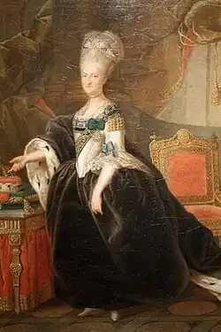 „VON GOTTES GNADEN FRANZISCA CHRISTINA PFALTZ GRÄFIN BEŸ RHEIN VND D H R R FÜRSTIN VND ÄBTISSIN DER KAŸSERLICHEN FREŸ WELTLICHEN STIFTER ESSEN VND THORN IN BAŸERN ZV GVLICH CLEVE VND BERG HERZOGIN FÜRSTIN ZV MOERS GRÄFIN ZV VELDENZ SPONHEIM DER MARCK VND RAVENSBERG FRAV ZV RAVENSTEIN BREŸSIG RELLINGHAVSEN HVCKARDE ANNO 1744“