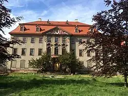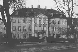 Von 1930 bis 1945 war Major Otto Busse Eigentümer der Schlossanlage. Unter ihm wurden das Schloss und die Parkanlage 1941 als Kunst- und Kulturdenkmale in die sächsische Landesdenkmalliste A aufgenommen. Nach dem Ende des Zweiten Weltkriegs zog zunächst ein Bataillon der US-Streitkräfte und wenig später die Militärkommandantur der Roten Armee in das Schloss ein.[11] Ab Mai 1946 wurde es, im Besitz der UdSSR, als Hotel für Messebesucher genutzt. Ab Januar 1950 wurde die Anlage als Finanzschule verpachtet und teilweise für Stallungen genutzt.[11] Ab 1968 ging das Anwesen in den Besitz der Stadt Leipzig über. Es zog ein Alten- und Pflegeheim ein, das bis 2003 Bestand hatte.[12]