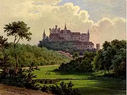 - Erweiterungen mit einer Vorburg und Wehrgängen nach Osten zur Stadt (Angriffs-Seite): unterste Pforte um 1350, mittlerer Torturm um 1460 (barocker Oberbau und Umgestaltung zum Glockenturm 1682), oberes Schlosstor mit Spitzbogenportal von 1491; Ottonischer Bau (Fürstenbau, um 1500), Schlosskirche als dreischiffige Hallenkirche über den Galerien des obersten Zwingers (wohl 1501 geweiht, Wandmalereien von 1504).