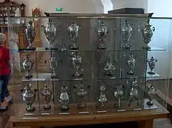 Weitere Räume befassen sich mit der bergischen Wohnkultur des 17. bis 19. Jahrhunderts und zeigen Möbel sowie Einrichtungsgegenstände aus dem Bergischen Land. Dabei sind unter anderem viele unterschiedliche Modelle der typischen bergischen Dröppelminna zu sehen, einer barocken Kaffeekanne, die meist aus Zinn als Ersatz für das teure Silber bestand.[119] Zu den besonderen Exponaten des Museums zählen unter anderem die folgenden drei Stücke: