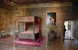 Auf der gegenüberliegenden Seite des Vestibüls und damit über dem Zimmer Dianes de Poitiers liegt das einstige Schlafzimmer Katharinas von Medici (französisch Chambre de Catherine de Medicis). Wie Césars Raum verdankt dieses Zimmer sein heutiges Aussehen Restaurierungsarbeiten im 19. Jahrhundert. Er ist mit Möbeln sowie Wandbehängen aus dem 16. Jahrhundert ausgestattet und besitzt einen Renaissancekamin aus weißem Carrara-Marmor.[29] Wertvollstes Gemälde in diesem Raum ist Correggios Unterrichtung der Liebe als Öl-auf-Holz-Ausführung. Die Leinwandversion dieses Gemäldes befindet sich in der National Gallery London.