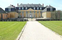 Der Bauherr, der Marquis de Hallot, ließ den Vorgängerbau abreißen, von dem lediglich ein eisernes Tor an der Route de Chartres zeugt.