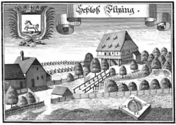 Von dem Bau sind nur wenige Quellen überliefert. Ein Stich des bayerischen Hofkupferstechers Michael Wening aus dem Jahr 1723 zeigt einen zweigeschossigen Walmdachbau. Das Haus ist ringsum von einem Balkon umgeben. Unterhalb des Hügels umgibt ein Wassergraben das Schloss. Zum Haus gehörig zeigt der Stich ein kleineres Anwesen sowie einen Obstgarten.
