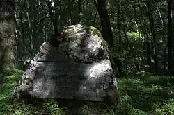 Das Grab des zweiten Schlossbesitzers aus der Familie von Pöllnitz, Karl Friedrich von Pöllnitz Frankenberg (1758–1826), liegt nicht weit entfernt von Schloss und Schlossfriedhof in der Nähe des Gipfelplateaus des Scheinbergs, mit 499 Metern die höchste Erhebung im Steigerwald. Ganz im Sinne der naturverbundenen und sozialreformerischen Ideen Jean-Jacques Rousseaus liegen das Grab und der Grabstein auf einer Rousseau-Insel inmitten eines kleinen Waldsees.