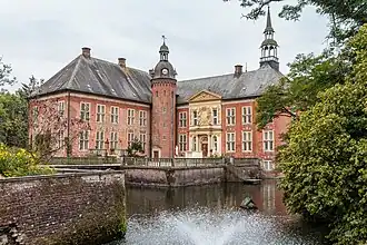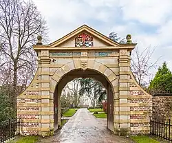 Die Anlage wurde 1653 (lt. Chronogramm) um ein Tor zum Schlosspark ergänzt. Es zeigt das Wappen der Herren von Frydag, die 1646 in den erblichen Reichsfreiherrenstand erhoben wurden. Harro Burchard von Frydag gab dem Wasserschloss seine heutige barocke Gestalt: