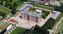 Schloss Gottesaue von Südwesten aus der Luft gesehen