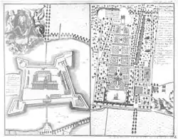 - Rekonstruktionszeichnung im Zustand im 17. Jahrhundert