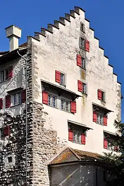 - 3. Obergeschoss: In der ersten Kammer seewärts ist ein Ofen aus dem Jahr 1776 eingebaut, erstellt durch Heinrich Bleuler, mit Schlossansichten und Landschaften in Rokokomanier. Im hinteren Teil ist ein Saal mit Malereien im historischen Stil von 1917.
