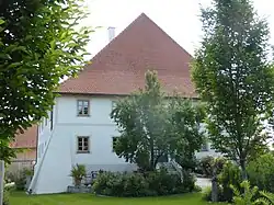 - Ehemals Schloss, dann Bauernhaus, zweigeschossiger, nahezu quadratischer Walmdachbau, im Kern 16./17. Jahrhundert