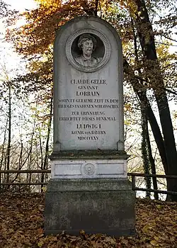 1865 stiftete der 1848 zurückgetretene bayerische König Ludwig I. ein Denkmal mit Inschrift für den französischen Maler Claude Lorrain auf dem ehemaligen Schlossgelände, da irrtümlich vermutet wurde, dass er einige Zeit auf Schloss Harlaching gelebt hatte.