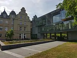 Mit dem Schloss sind zwei weitere Gebäude direkt verbunden, das Haus Regina-Pacis, das über eine gedeckte Brücke mit dem Schloss verbunden ist. Das Haus Regina-Pacis wurde 1992 eröffnet, die Pläne stammen vom Architekten Michel Mousel. In einem sehr modernen Stil wurde ein weiterer Flügel auf der anderen Seite errichtet (in Richtung des Ortes Walferdingen). Dieser Flügel wurde 2007 fertiggestellt, die Pläne stammen vom Architekturbüro Hermann & Valentiny.