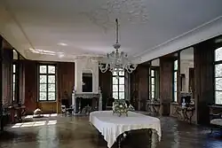 Das Innere weist verschiedene Stuckdecken und Kaminsimse im Louis-quinze-Stil auf. Die Eingangshalle wird von einer dreifachen Treppe dominiert. Eine Besonderheit ist der weitgehend im Originalzustand erhaltene Festsaal im Hauptgeschoss, dessen Einrichtung ein Beispiel für den Lütticher Barock und den Lütticher-Aachener Möbelstil der damaligen Zeit ist. Jahrhundert mit u. a. einer feinen Stuckdecke, einem mit Figuren eingelegten Parkettboden, einer Eichentäfelung mit reich verzierten Vertäfelungen sowie Tür- und Fensterrahmen, einem geschnitzten Natursteinkamin und mehreren antiken Wandteppichen. Im Esszimmer befindet sich eine Gold-Leder-Tapete.
