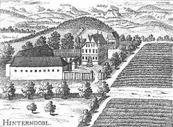 Der eigentliche Erbauer von Schloss Hinterndobl ist nicht bekannt. Das Schloss wird 1560 erstmals genannt, sein damaliger Besitzer war Leonhard Puchner (auch Puechner geschrieben), Pfleger zu Erlach, der beim Kaiser die Erhebung zu einem adeligen Sitz erwirkte. Der Sohn Christoph Puchner war Erbauer des Schlosses Puchberg bei Wels. Die Tochter Maria bekam Hinterndobl als Heiratsgut, als sie 1570 Hans Christian Wiellinger (Willinger) heiratete. Ein Sohn aus dieser Ehe war der bekannte Bauernführer Achaz Wiellinger von der Au auf Hinterndobl, der 1627 in Linz hingerichtet wurde. Trotz der Hinrichtung von Achaz Wiellinger blieb Hinterndobl im Besitz der Familie, da sich sein Sohn Johann Ernst (verheiratet in zweiter Ehe mit Anna Renata, geb. von Clam) wieder zum katholischen Glauben bekehrt hatte. Anna Renata verstarb am 15. Januar 1690, Johann Ernst am 3. August desselben Jahres. 1731 gelangte der Besitz als Heiratsgut der Maria Eleonora Wiellinger an deren Gatten, den Freiherrn Johann Ludwig von Gablkoven. Deren Sohn Achaz verkaufte die Herrschaft zusammen mit Schloss Innersee 1777 an Ernst Ignaz Gemberly, Ritter von Weidenthal; die Weitergabe des Besitzes folgte dann für etwa 100 Jahre bis ca. 1870 dem gleichen Erbgang wie das Schloss Innersee, dann teilten sich die Besitztümer auf. Das Schloss diente längere Zeit als Braustätte und als Gasthaus (früherer Gasthof „Zum Bräu“).