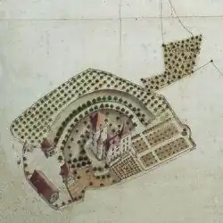 Rudolf Gabriel von Stürler (1767–1832) verfügte durch das Vermögen seiner Mutter Katharina Salome von Wurstemberger (1731–1803) über die nötigen Mittel, den Schlosspark in einen englischen Landschaftsgarten umzugestalten, die barocken Gartenparterres wurden teilweise aufgelöst.[13] Er liess die heute mächtigen Platanen pflanzen, wie eine Vedute aus dem Jahr 1819 veranschaulicht.[14] Der kinderlose Stürler hinterliess die Schlossbesitzung seinem Patenkind Eduard Rudolf von Stürler (1814–1905)[15].