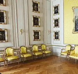 Die aufwändig geschnitzten und vergoldeten Sitzgarnituren, Konsoltische, Bilderrahmen sowie Vertäfelungen, Tapetenleisten, Türblätter etc. wurden in erster Linie vom französischen Hofebenisten Georges Jacob gefertigt. Ebenfalls tätig war der Bildhauer François-Joseph Duret. Das Tafelsilber kam von Jean-Jacques Kirstein aus Straßburg. Die Stofftapeten und Möbelbezüge aus Seide oder mehrfarbigen Damasten wurden in Lyon gefertigt. Als Bildhauer waren u. a. Martin-Claude Monot und François-Joseph Duret tätig. Die Entwürfe zum Intérieur schufen Mannlich und Jean-Démosthène Dugourc.