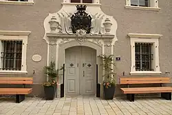 Die ersten Häuser hier waren 1450 ein Holzhaus mit Badstube und gemauertem Kasten sowie ein sogenanntes Stöckl von 1419. Der Umbau der angekauften Häuser zu einem Palais war 1598 abgeschlossen. Durch den Marktbrand von 1742 wurde dieser Bau schwer beschädigt, konnte aber durch den Lambrechter Baumeister Fidelis Hainzl in Form eines Barockpalais neu aufgebaut werden. An der Neugestaltung wirkten bedeutsame Künstler der Zeit mit, so etwa der Maler Gregor Lederwasch IV., der Stuckateur Giovanni Gaetano Androi, der das Hauptportal schuf; der Salzburger Kunstschmied Philipp Hinterseer schuf das schmiedeeiserne Allianzwappen Kuenburg-Rollingen für das Eingangstor. Der 1745 angelegte Schlosspark mit den alten Baumbeständen ist zwischenzeitlich umgewidmet worden. Im Hauseingang ist eine Inschrift aus der 1790 abgebrochenen Kapuzinerkirche, die an den Erbauer dieser Kirche von 1671, Erzbischof Max Gandolf von Kuenburg, erinnert.