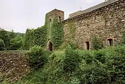 Die ursprüngliche Burg ließ sich durch einen Damm in eine Wasserburg verwandeln. Heute ist als Bauteil aus dem 13. Jahrhundert lediglich der quadratische Bergfried im romanischen Baustil erhalten. Die übrigen Befestigungen, eine Ringmauer und eine acht Meter hohe Schildmauer mit zwei Flankierungstürmen, weisen Elemente der Gotik auf und entstanden im 14. oder 15. Jahrhundert. Vermutlich bereits ab der Mitte des 14. Jahrhunderts diente die Burg nicht mehr als Rittersitz, sondern in erster Linie als Wirtschaftshof.