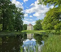 Die unmittelbar neben dem Schloss gelegene „Weiße Brücke“ oder Palladiobrücke, eine erstmals 1776 erwähnte Holzkonstruktion, ist eng verwandt mit der aus Wörlitz bekannten Version. Auf Grund der 2013 erlittenen Hochwasserschäden wurde sie 2017 neu errichtet.