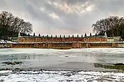 Das Hauptgebäude wurde von insgesamt zwölf einzelnen Pavillons begleitet, denen ihrerseits kleine Gartenanlagen zugeordnet waren. Die symmetrisch an den Langseiten einer Mittelachse aus Wasserbassins angeordneten Pavillons dienten der Beherbergung von Gästen, der König selbst wohnte im Hauptschloss. Die Bauten waren sämtlich von Scheinarchitektur bedeckt – die eigentliche Architektur daher sehr einfach und zurückhaltend ausgestaltet.