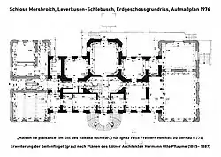 Nach der Bauaufnahme durch den Architekten Karl-Lothar Dietzsch für die Planung des Umbaus, der Restaurierung und für die Ergänzungen der Bestandsgebäude von 1976–1978[13] erfolgten bis 1984 mehrere Neubauplanungen, zunächst als geschlossene Ellipse[14] und dann in Form eines „stehenden Korbbogens“ (anstelle der Remisen) im Westen des Schlosses durch das Büro O.M. Ungers (mit St. Böhm, K.- L. Dietzsch, K. Nagel und Th. Will)..[15] Diese Konzepte, die sich an Ungers` Idee von der Grossform orientierten[16] mit einem „Museums-Eiland“ und einer „Umwallung“ durch Nebengebäude, die ein Kontinuum an ausstellungstechnischen Variationsmöglichkeiten vorsahen, wurden jedoch aufgegeben[17]. Von 1981 bis 1984 erfolgten durch dasselbe Büro aufwendige Umbau- und Renovierungsarbeiten, die sich allein an dem „ursprünglich barocken Planungsgedanken“ orientierten.[18]