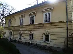 Das Nebengebäude gegenüber der Kapelle besitzt eine historisierende Fassade aus der Zeit um 1900.