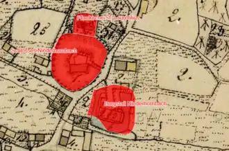 - Dreiflügelanlage über mittelalterlichem Kern, Wiederaufbau 1665