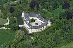 Das Schloss steht im Norden der Ortschaft Niederleis inmitten einer Parkanlage. Das Bauwerk war früher von einem Wassergraben umgeben.[1]