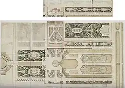 Ab Ende 1906 schmiedete der neue Schlossherr Pläne zur Rebarockisierung der Schlossgärten. Die Entwürfe dazu lieferte der Pariser Gartenarchitekt Achille Duchêne. Er war zu jener Zeit international führend in der Gestaltung neobarocker französischer Gärten.[48] Die Neugestaltung umfasste die Abholzung der Bäume auf den umgebenden Dämmen und auf der Vorwerkinsel, um die Schlossgebäude wieder freizustellen.[54] Das Hauptaugenmerk lag jedoch auf der kompletten Veränderung des Nordgartens zu einer rechteckigen Insel mit Rasen- und Broderieparterres. Die von Weyhe gepflanzten Bäume wurden alle gerodet und die Binnenteiche beseitigt, der Garten wurde eingeebnet.