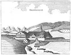 Wie auf dem Stich von Georg Matthäus Vischer von 1674 zu erkennen ist, war Oberbergham ein zweigeschoßiges Gebäude, das von einer Mauer mit zwei Toren umgeben war. Innerhalb des umfriedeten Bereichs ist ein Troadkasten aus Holz zu erkennen; dahinter liegt ein langgestrecktes Gebäude, wahrscheinlich der zum Schloss gehörende Meierhof.