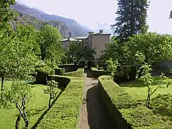 Das Herrenhaus liegt in einem Park, der im 18. Jahrhundert konzipiert wurde; die Terrassierungen stammen aus dem Jahre 1717, wogegen erst im 19. Jahrhundert die Umfassungsmauer um den Park angelegt wurde.[2]