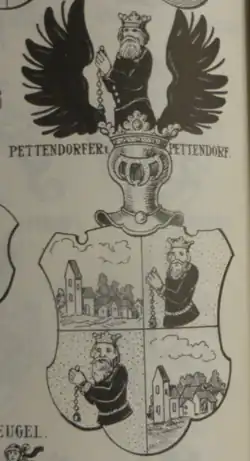 - ↑ a b c d Georg Hager: Pettendorf (Schlösschen). In: Bezirksamt Neunburg v. W. R. Oldenbourg, 1906, S. 60–61 (Textarchiv – Internet Archive).
