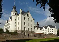 Südlich der Schlossauffahrt steht die sogenannte Kommandeursvilla, das Wohnhaus des Kommandanten der Kadettenanstalt. Der Bau in den historistischen Formen der Neorenaissance wurde von 1895 bis 1897 errichtet und lehnt sich in seiner Gestaltung an die Treppentürme des 19. Jahrhunderts am Schloss an. Nach ihrer Sanierung beherbergt die Kommandeursvilla heute Wohnungen.