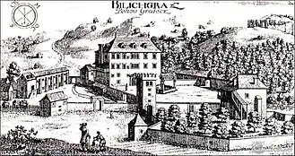 Diese erste Burg Billichgrätz stand auf dem heutigen Hügel Stari grad - Kalvarija oberhalb des heutigen Herrenhauses. 1511 wurde die Burg durch ein Erdbeben schwer beschädigt und 1515 im Rahmen des Windischen Bauernaufstandes zerstört. Der Adelssitz wurde danach von der Oberburg auf die Unterburg verlegt, heute Schloss Polhov Gradec.[7]
