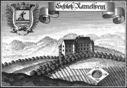 Die Erbauer des Schlosses sind unbekannt, es war aber ein typischer Ministerialensitz der Grafen von Hals. Es wird vermutet, dass der 1248 erwähnte „Engilbertus de Rehovinsperg“ als Lehensnehmer der Grafen von Hals oder seine Vorfahren als Erbauer in Frage kommen. Als Zeuge tritt im Jahr 1267 Fridericus de Ramelsberg im Kloster Niederaltaich auf. In verschiedenen Urkunden aus dem 13. bis 17. Jahrhundert erscheinen immer wieder niederbayerische Kleinadelsfamilien als Hofmarksherrn, wie die Buchberger (Puchberger), Auer, Wenger, Pfaffer (Pfahler) oder seit 1572 die Tenger (Dengler) von Ried. 1721 folgte das Freiherrngeschlecht Drexel. Ulrich Baron von Drexel erhielt die Hofmark auf dem Heiratsweg von seiner Ehefrau Freiin Maria Franziska von Tengler. 1748 vermählte sich die Erbtochter Maria Genoveva von Drexel mit Johann Baptist Valentin von Weickel; dieser war ein bayrischer Infanterieoffizier, stammte aus einer lothringischen Familie und war später Stadtkommandant von Straubing, er schrieb sich später Vequel. Die Hofmarksuntertanen verdeutschten den Namen ihrer neuen Herrschaft zu „Weckl“ oder „Wöckl“ und nannten die Schlossherrin „die Böse Wecklin“, um die sich verschiedene Sagen ranken.