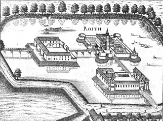 Auf dem Stich von Georg Matthäus Vischer von 1674 ist Schloss Roith eine aus drei Gebäudekomplexen bestehende Anlage innerhalb eines großen Teiches. Das eigentliche Schloss war durch eine Mauer, die mit vier Türmen bewehrt war, geschützt. Zum Schloss bzw. zu den in dem Teich sich befindlichen Wirtschaftsgebäude führen Brücken, die partiell durch Torbauten geschützt waren. Trotz dieser wehrhaften Anlage wurde Schloss Roith 1620 durch bairische Soldaten niedergebrannt, offensichtlich aber wieder aufgebaut.