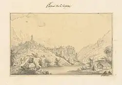 Schloss Sargans mitsamt dem Schlossberg in der Ansicht von Süden -