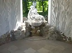 - ↑ B. Hajós verweist darauf, dass sie für einen der vier nicht realisierten Brunnen im Großen Parterre geschaffen worden war. Desgleichen hier, vor 1918; Ob die [unzumutbare!] Umdeutung dieser Figuren zu Donau und Enns mit dem Ende der Monarchie eingeleitet wurde oder erst kürzlich, ist offen.