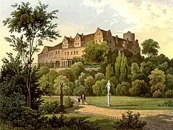 - Schkopau. In: Alexander Duncker (Hrsg.): Die ländlichen Wohnsitze, Schlösser und Residenzen der ritterschaftlichen Grundbesitzer in der preußischen Monarchie nebst den königlichen Familien-, Haus-, Fideicommiss- und Schattull-Gütern. Band 5. Duncker, Berlin 1862, Blatt 299 (zlb.de [Text zwei Seiten danach]).