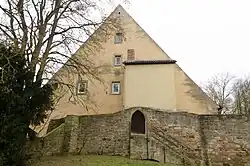 Das Schloss Sulzfeld wurde 1526 dem Grafen von Henneberg erbaut.[1][2] 1548 bis 1552 entstand als Vorburg die Friedhofsbefestigung, deren Wehrmauer noch ca. 4 m hoch ist und im Rundbögen geschlossene Stützarkaden hat, die sicherlich einst einen Wehrgang auf der Mauer trugen.
