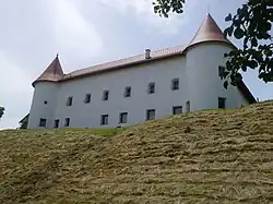 An das Hauptgebäude schließen westlich jeweils die Ansätze eines nördlichen und eines südlichen Seitenflügels an. Diese Seitenflügel waren früher länger und wurden nach einem Brand im Jahr 1659 abgerissen (teilweise sind noch Fundamente davon erkennbar). Die beiden Rundtürme, die früher mit Holzschindeln gedeckt waren, sind seit der letzten Restaurierung wie alle Dächer mit Tonziegeln gedeckt. Die Verwendung des ehemaligen Schlosses als Landwirtschaft bedingte einige Anbauten und Adaptierungen, jedoch lassen noch einige schmiedeeiserne Fensterkörbe und bemerkenswerte Gewölbe in den Innenräumen den schlossartigen Charakter des Hauptgebäudes erkennen.
